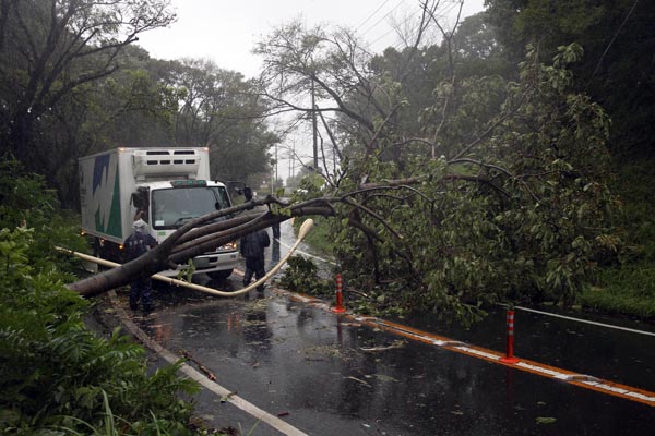 強風でへし折られた街路灯と樹木(2011年の台風15号)/(C)日刊ゲンダイ
