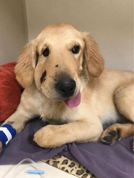ガラガラヘビから飼い主を守り顔をかまれた子犬の“面構え”