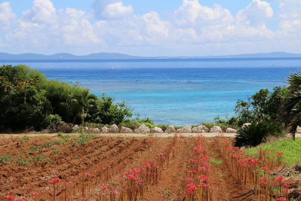 彼岸花畑から絶景ビーチを望む(提供写真)