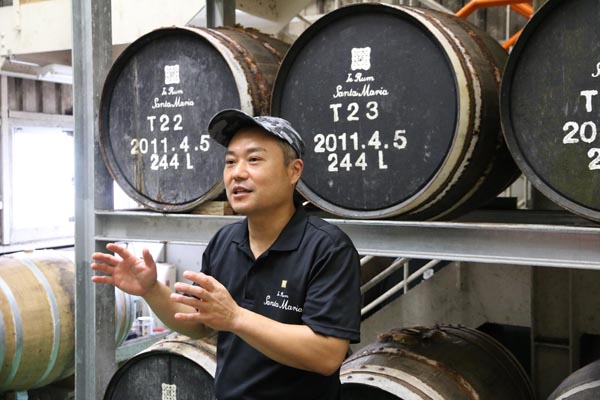 伊江島蒸溜所で説明する浅香さん(提供写真)