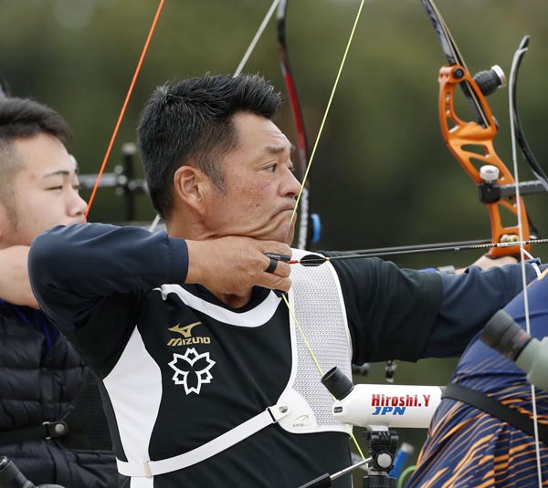 昨年のアーチェリー1次選考会での山本博さん(C)共同通信社
