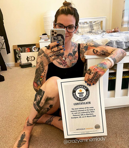 ギネス認定!全身15カ所にエミネムのタトゥーを入れた女性
