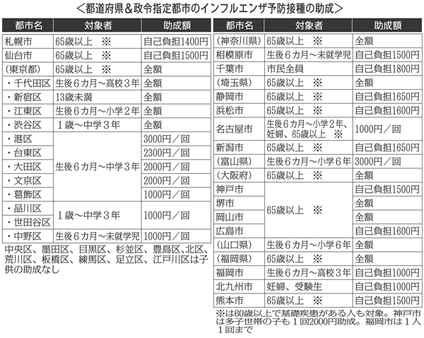都道府県&政令指定都市のインフルエンザ予防接種の助成(C)日刊ゲンダイ