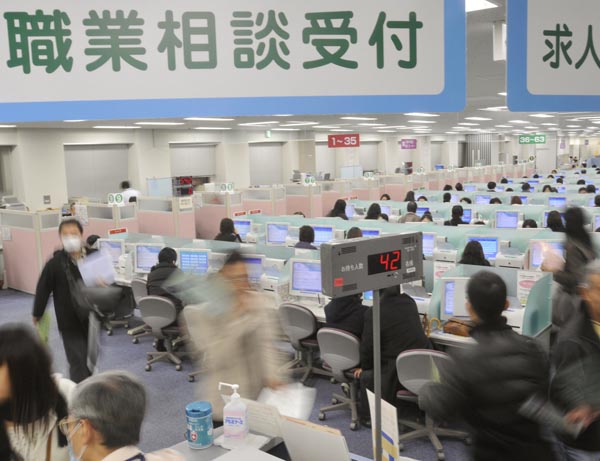 仕事を求める人で混雑するハローワーク(C)共同通信社