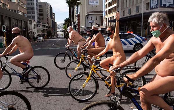 地球温暖化を防ぐため…さあ、裸になって自転車に乗ろう!