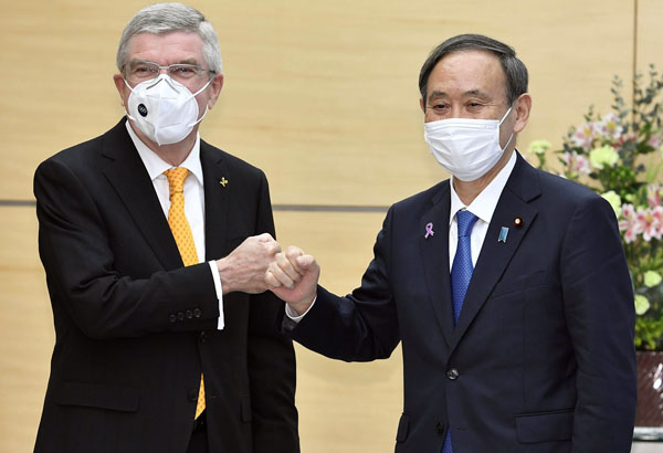 「コロナに打ち勝った証し」になるのか(菅首相とIOCのバッハ会長)/(C)共同通信社