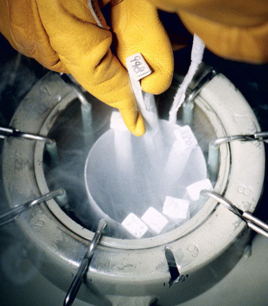 液体窒素タンクで保存される受精卵(C)共同通信社