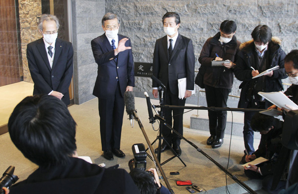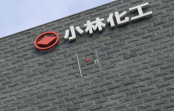 取材に応じる小林化工の小林社長(左から2人目、2020年12月)/(C)共同通信社