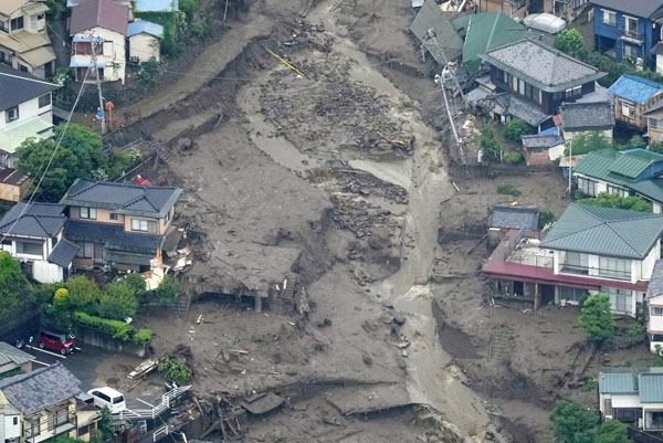 大規模な土石流が発生した静岡県熱海市伊豆山の現場(C)共同通信社
