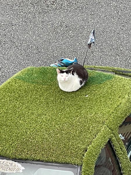 「変な車の上から毎朝7時に私を見る」英国の“謎めいたネコ”が話題に