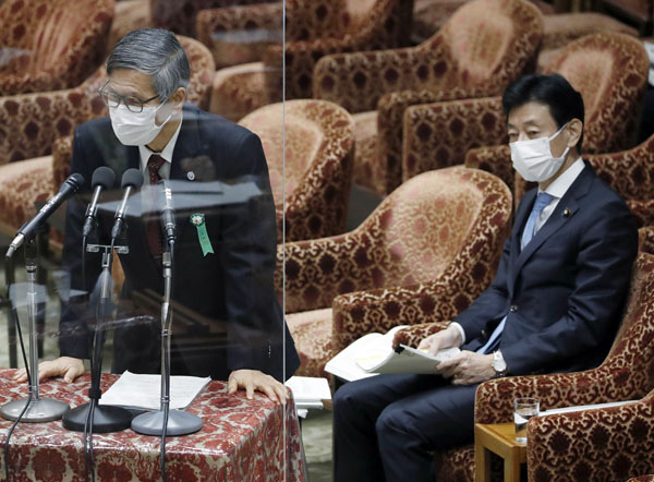 専門家の「年内いっぱい」は、政治的に難しい?(左から、分科会の尾身会長と西村コロナ担当相)/(C)日刊ゲンダイ