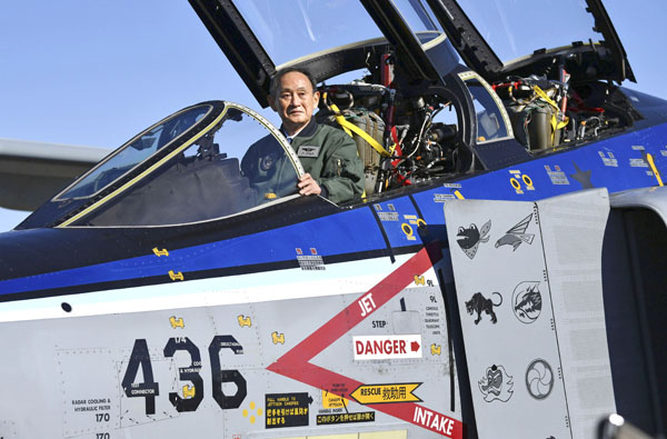 YouTubeにはこんなカットも…(F4戦闘機のコックピットに座り記念撮影する菅首相)/(代表撮影)