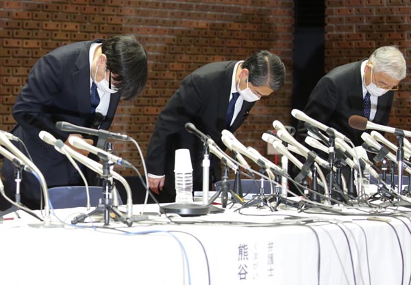 12月10日に行われた謝罪会見(左から日本大学、加藤直人理事長、渡邊武一郎副学長、長倉澄監事)(C)日刊ゲンダイ