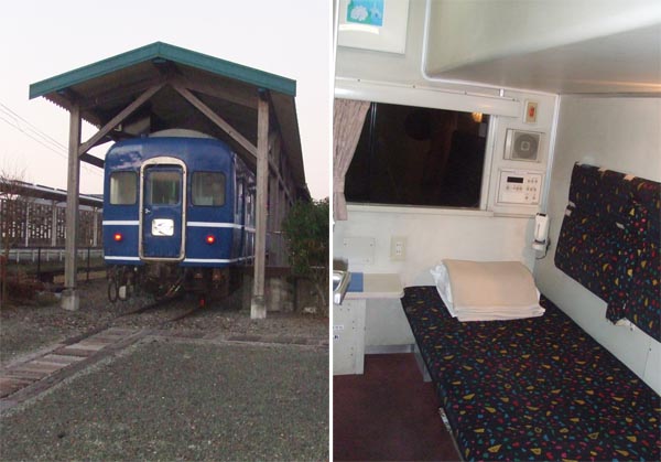 宿泊施設「ブルートレインたらぎ」(左)とB個室(C)日刊ゲンダイ