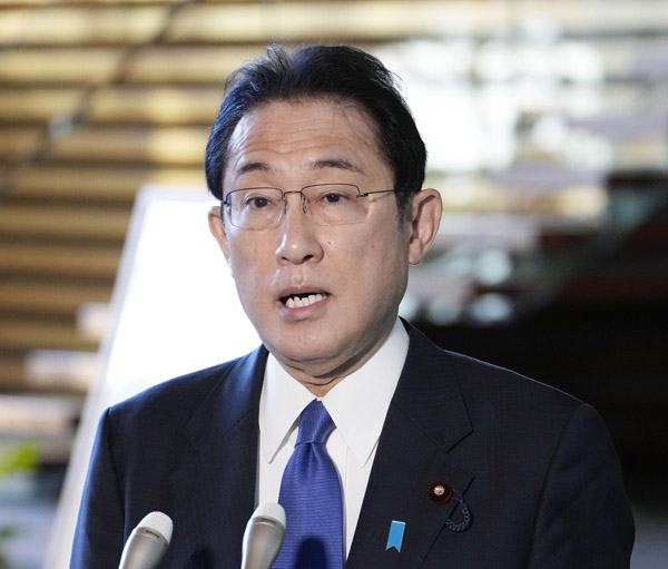 北朝鮮から弾道ミサイルの可能性があるものが発射されたことを受け、記者団の取材に応じる岸田首相(C)共同通信社