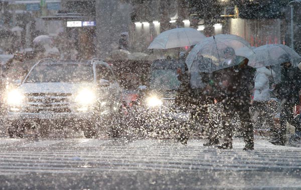 大雪の後は…(6日、降雪に見舞われる渋谷駅前スクランブル交差点を行き交う人々)/(C)日刊ゲンダイ