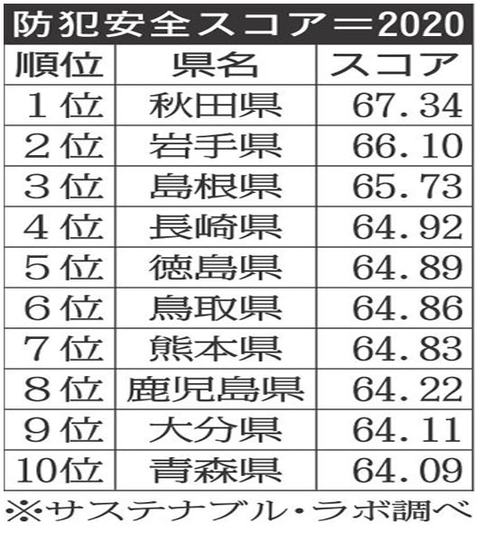 防犯安全スコア=2020(C)日刊ゲンダイ