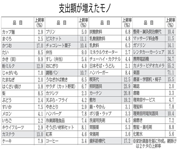 支出額が増えたモノ(C)日刊ゲンダイ