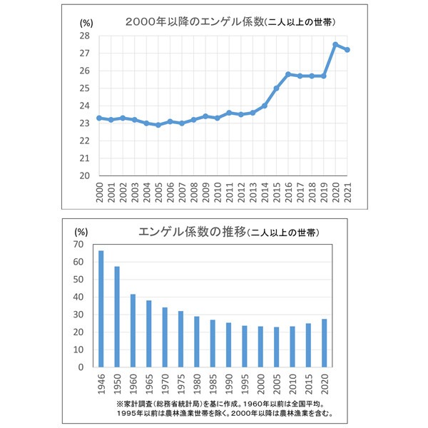 エンゲル係数の推移(上は2000年以降)/(C)日刊ゲンダイ