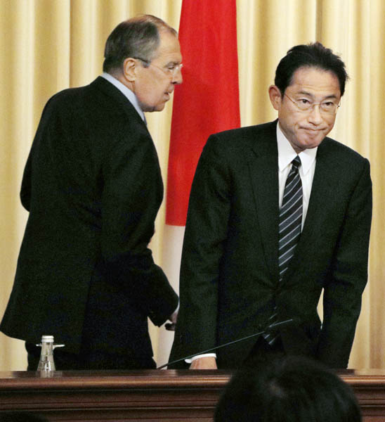 外相時代、姑息にまんまとかわすロシアのラブロフ外相に、怒りを露呈し相手に見せてしまった岸田首相(C)共同通信社