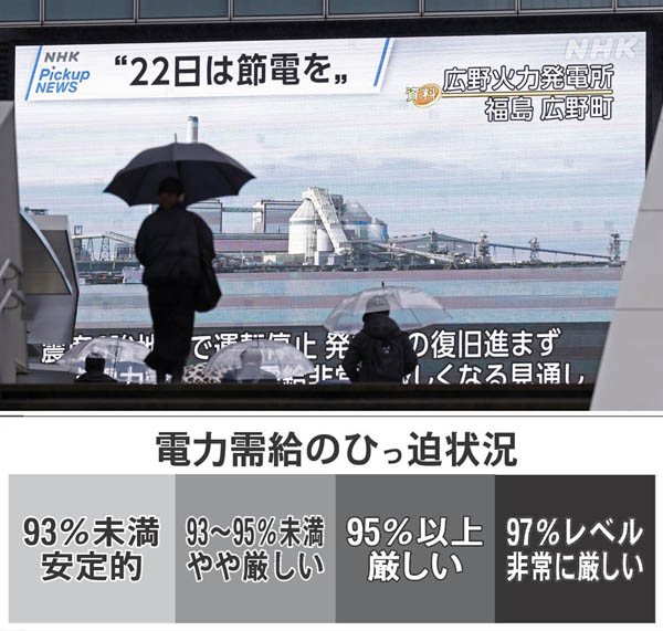 「需要ひっ迫警報」で節電呼びかけ 電力不足の原因は本当に3.16地震の影響か?