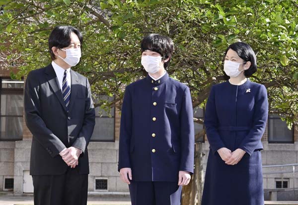 3月17日、お茶の水女子大付属中の卒業式に臨まれる秋篠宮ご夫妻と長男悠仁さま(代表撮影)