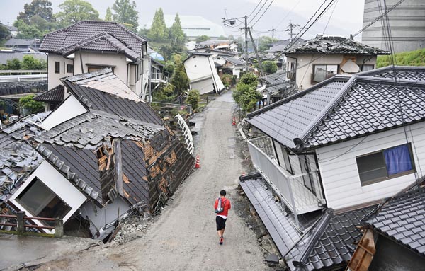 熊本地震で倒壊した家屋(C)共同通信社