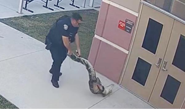 1.8mのワニが校舎の前に! 1人で捕獲した警察官にフロリダ州の小学校は大興奮