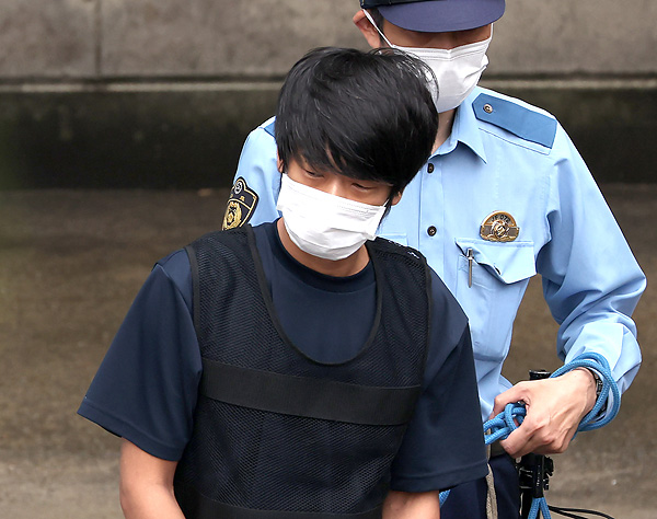 殺人容疑で送検される山上徹也容疑者=10日、奈良県警奈良西署(C)日刊ゲンダイ