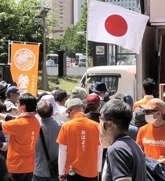 「日の丸」を掲げ保守をアピール(C)日刊ゲンダイ