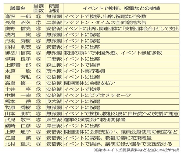 旧統一教会と接点のある入閣待機組は22人(C)日刊ゲンダイ