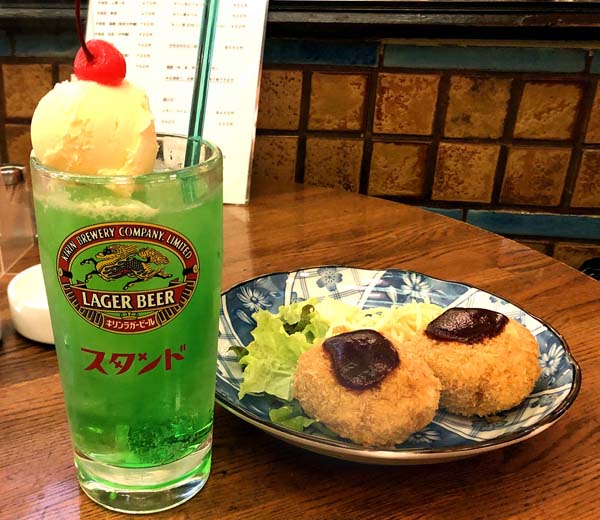 名物の「クリームソーダのアルコール割り」(C)日刊ゲンダイ