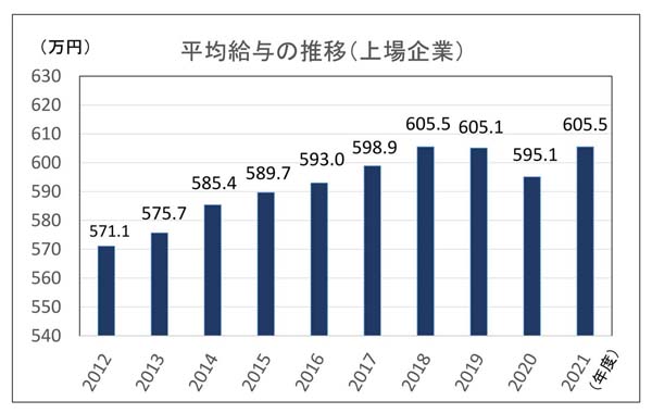 平均給与の推移(上場企業)(C)日刊ゲンダイ