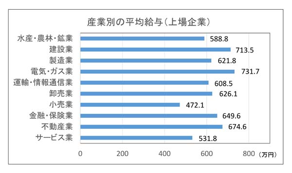 産業別の平均給与(上場企業)/(C)日刊ゲンダイ