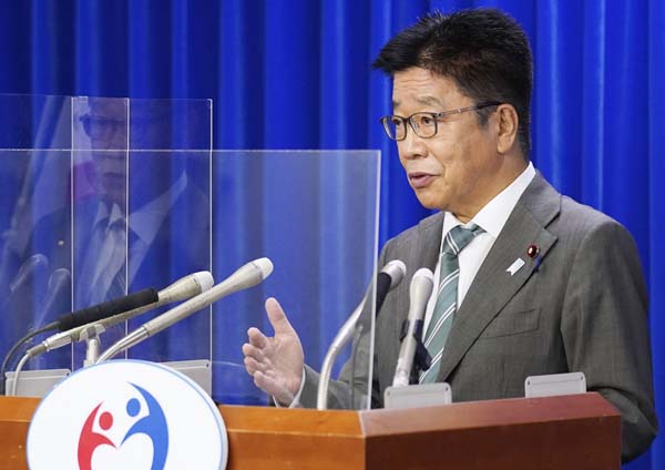 ちゃっかり丸投げ責任回避(会見する加藤勝信厚労相=24日)/(C)共同通信社
