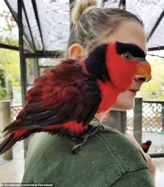 よくよく見てみると…「人間とオウム」のハーフのような不思議な写真