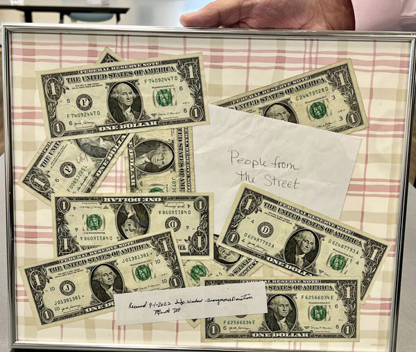 確かに9枚の1ドル紙幣が(ホームレス支援の女性アンバー・コンリーさんのフェイスブックから)