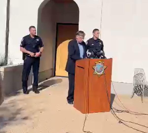 謎の車に関して記者会見するデゴリア市長ら(地元ジャーナリストのアンジェラ・スウォルツさんのツイッターから)