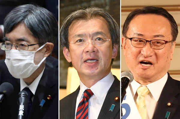 (左から)寺田稔総務相、秋葉賢也復興相、岡田直樹地方再生相の3大臣(C)日刊ゲンダイ