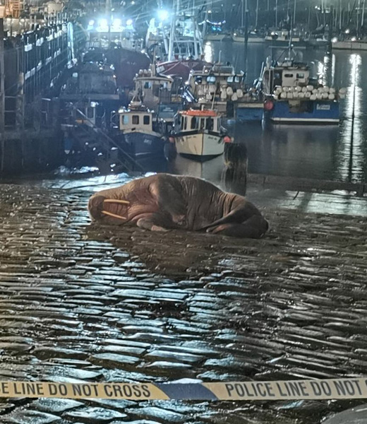 激レア!英国の港にセイウチが上陸…大みそかの花火大会が中止になるフィーバー
