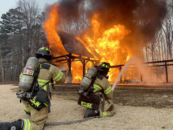 消火作業をするホール郡消防局の消防隊員(公式フェイスブックから)