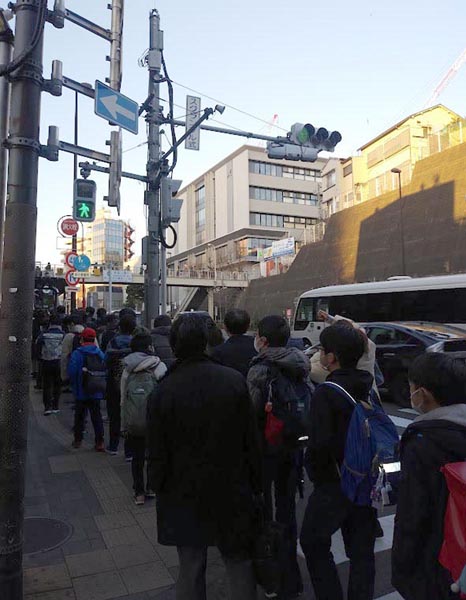 開成中学の入試に向かう受験生と保護者たち=2023年2月1日朝7時すぎ(筆者撮影)