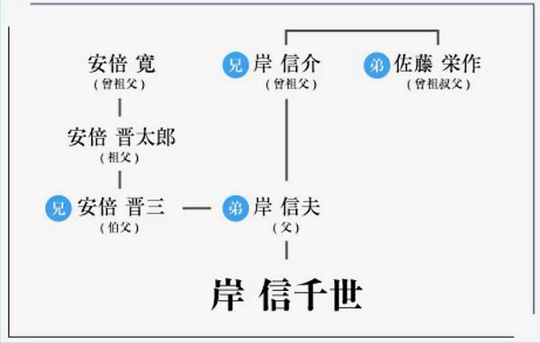 このような家系図が掲載されていたが…(=岸信千世氏の公式HPから/現在は削除)