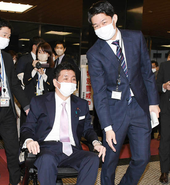 岸信夫前防衛相(左)の長男・信千世氏(右)は多くを語らないタイプというが…(C)日刊ゲンダイ