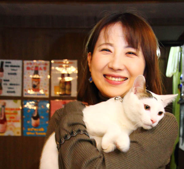 猫好きが高じて店を開いた高橋絵梨香さんと猫スタッフのムサシ(C)日刊ゲンダイ