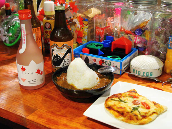 生地から手作り「路地猫ミニピザ」、ごはんがネコ型「路地猫カレー」、マタタビ酒も揃う(C)日刊ゲンダイ