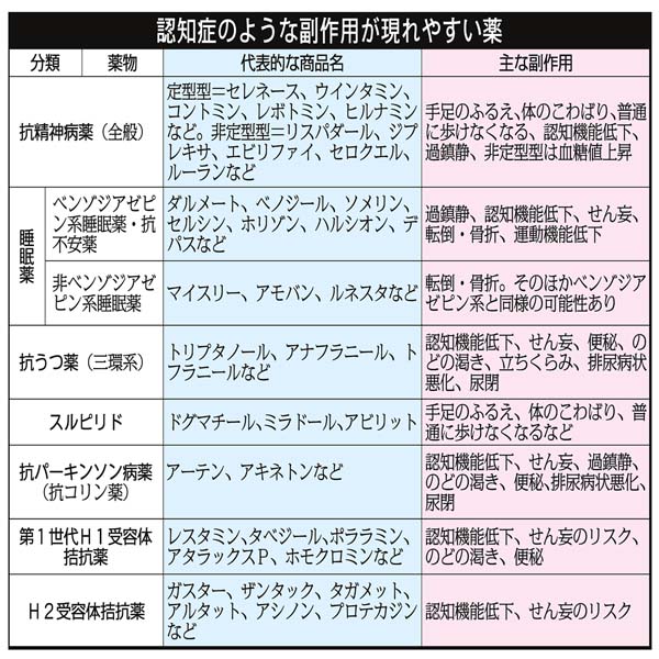 認知症のような副作用が現れやすい薬の一覧(C)日刊ゲンダイ