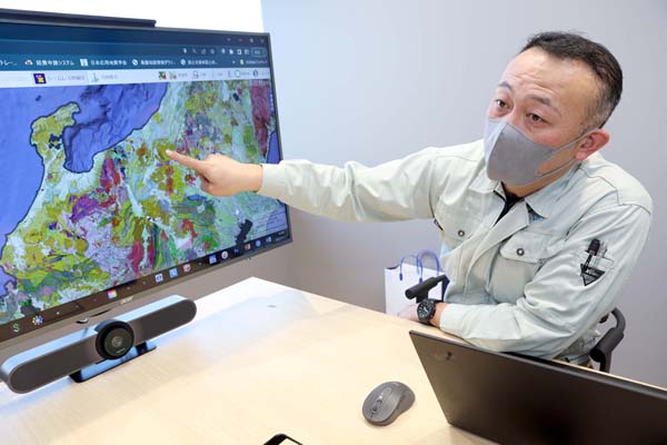 地質図を示しながら温泉の魅力を語る長谷川さん(C)日刊ゲンダイ