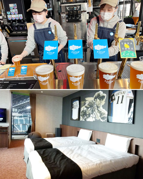 オリジナルビールが楽しめる(上)アジアで初めてとなる球場一体型ホテル(C)日刊ゲンダイ