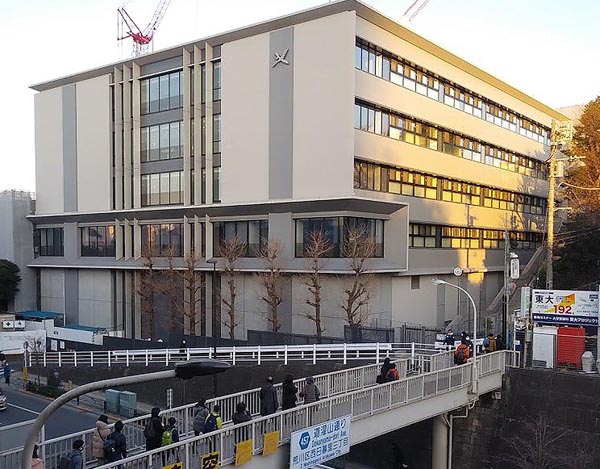 開成中学の入試に向かう受験生と保護者たち=2月1日(写真)田中幾太郎